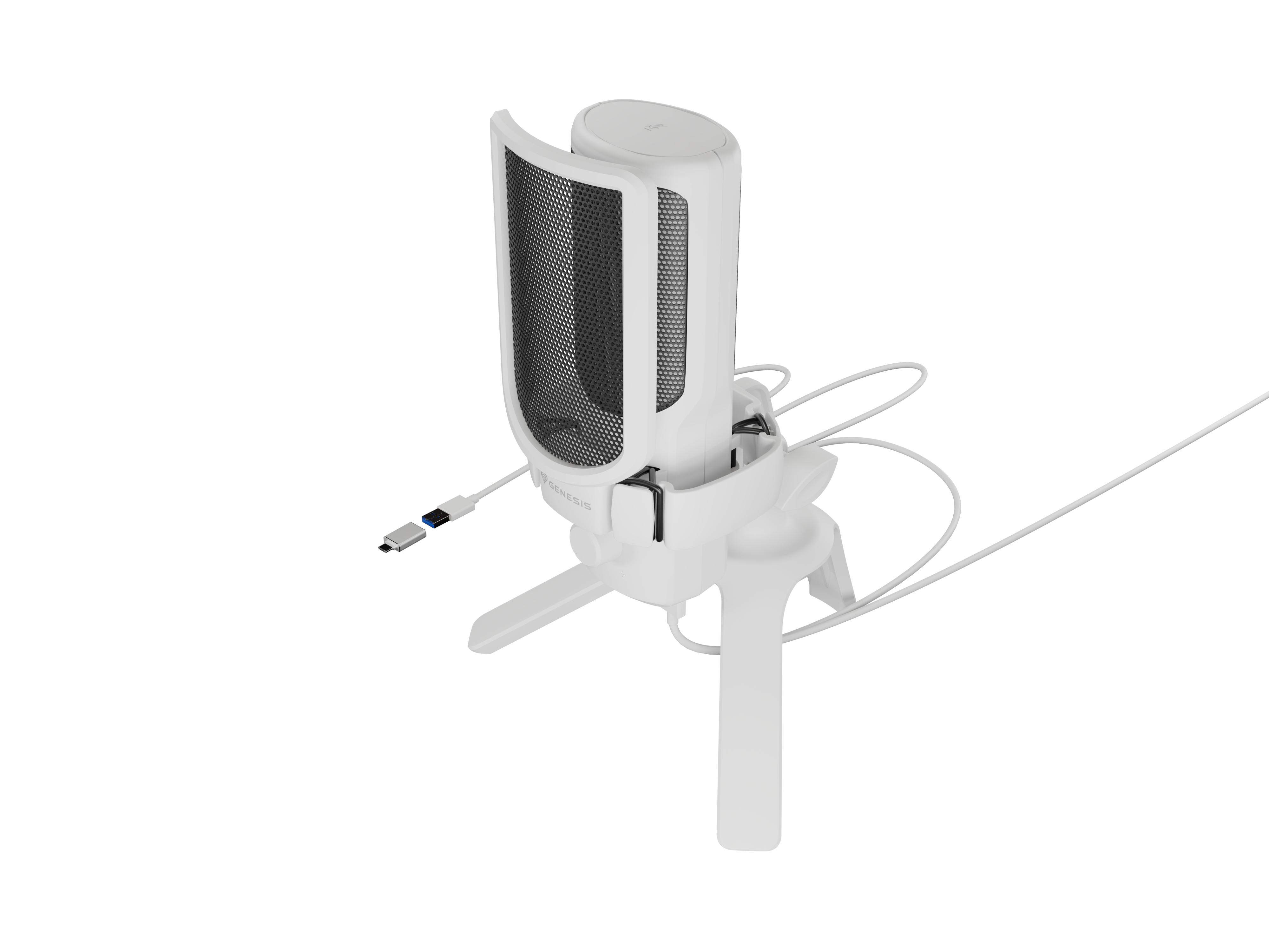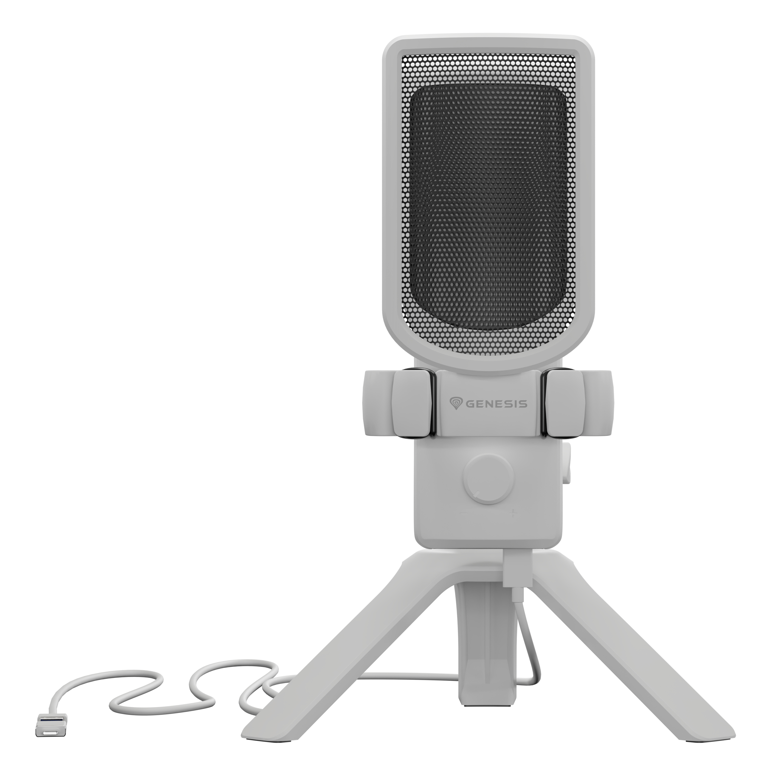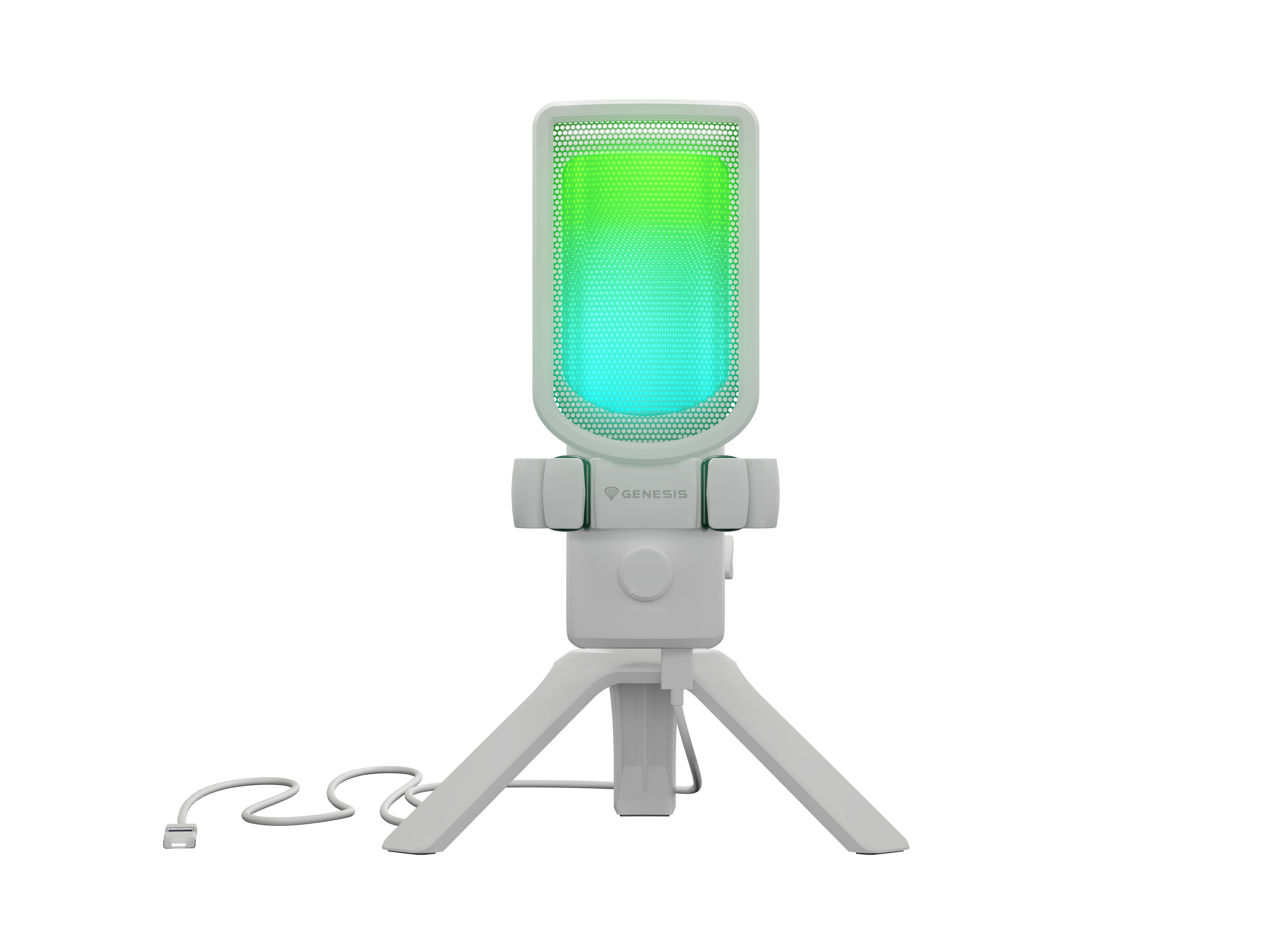 Genesis Radium 250 USB microfoon, USB-plug-and-play condensator, cardioïde karakteristiek, ingebouwde gain-knop, real-time headphone-monitoring, RGB verlichting, desk-stand inbegrepen, kleur Wit