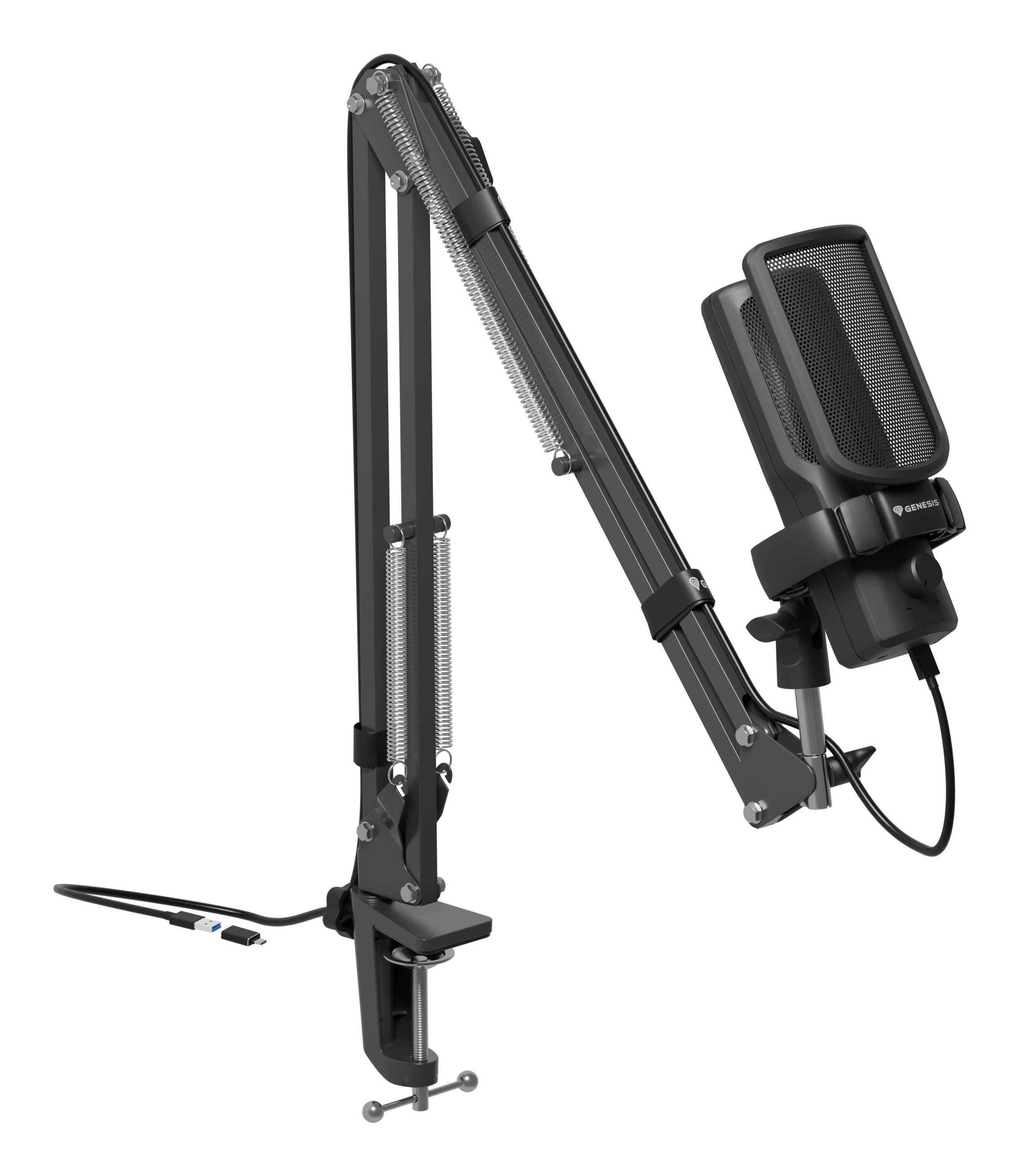 GENESIS Radium 251 USB arm white microfoon, USB-condensator, cardioïde karakteristiek, plug-and-play, arm-beugel inbegrepen, kleur Zwart
